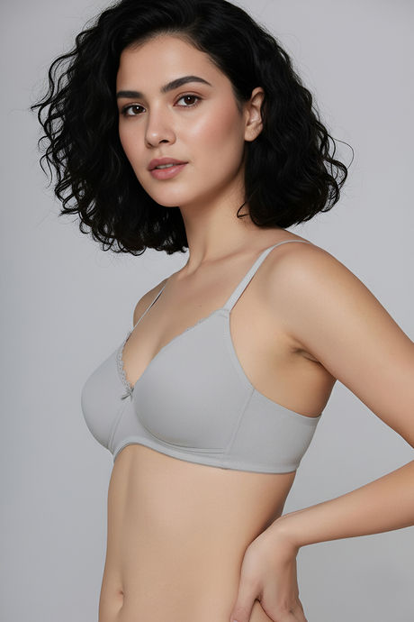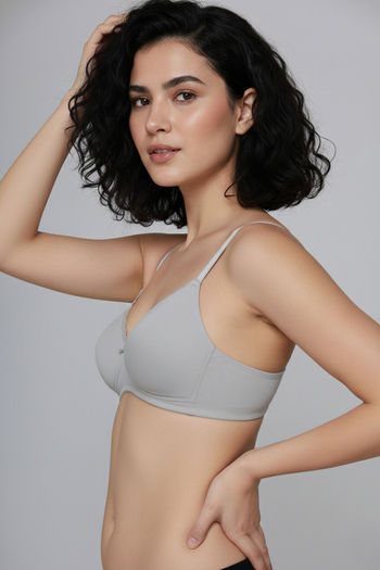 Zivame Padded Non Wired Medium Coverage Tshirt Bra - Grey Melange