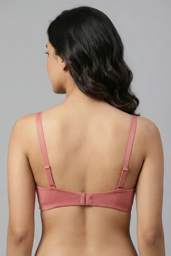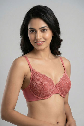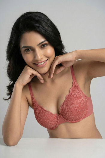 Zivame Padded Plunged Wired Medium Coverage Lace Bra - Dusty Cedar