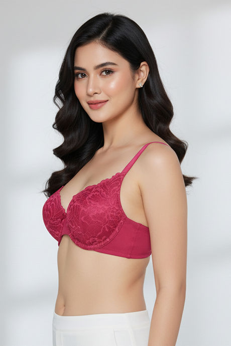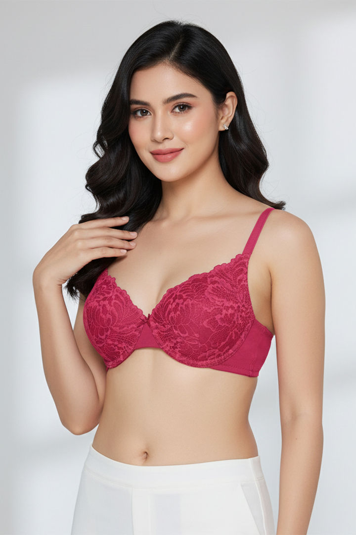 Zivame Padded Plunged Wired Medium Coverage Lace Bra - Vivacious