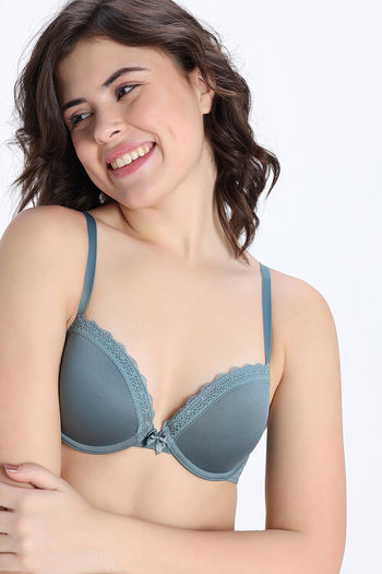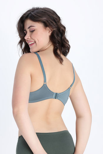 Zivame Padded Regular Wired Low Coverage Tshirt Bra - Grey Green