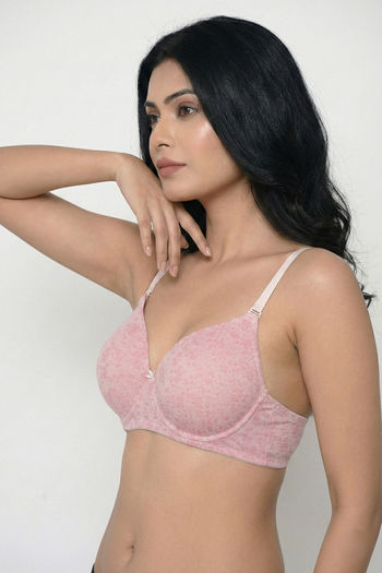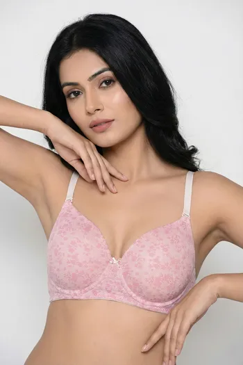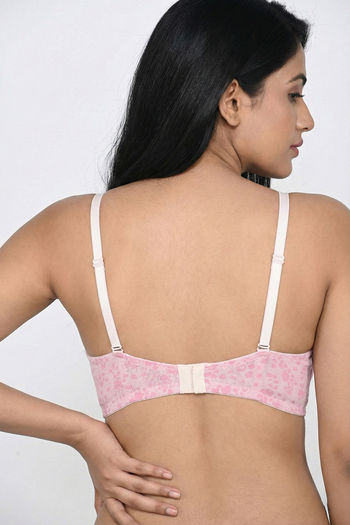 Zivame Padded Regular Wired 3/4th Coverage Tshirt Bra - Pink Lace Pattern