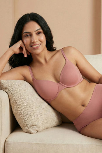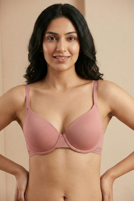 Zivame Padded Regular Wired Medium Coverage Tshirt Bra - Rose Tan