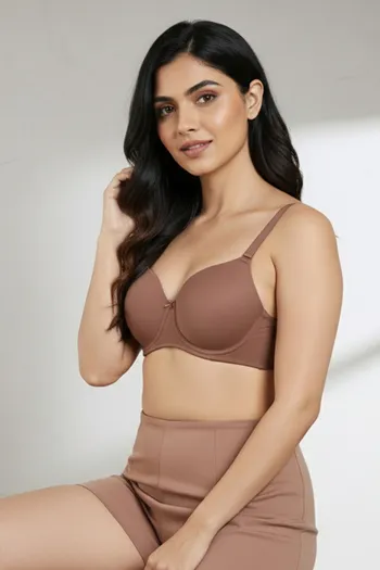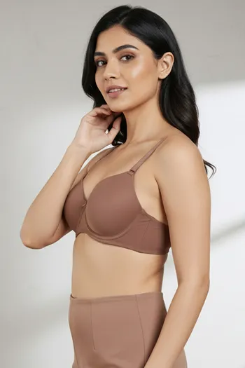 Zivame Padded Wired 3/4Th Coverage T-Shirt Bra - Nutmeg