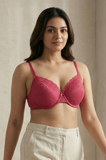 Zivame Love Potion Padded Wired 3/4th Coverage Lace Bra - Love Potion