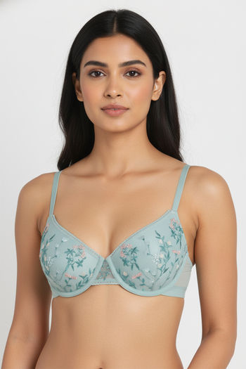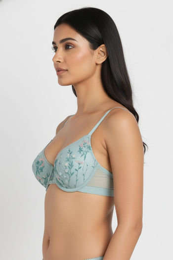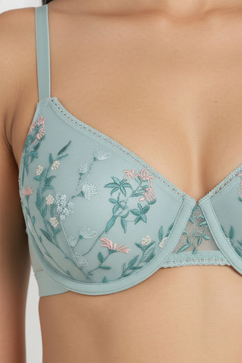 Zivame Wild Rose Padded Wired Medium Coverage Tshirt Bra - Green