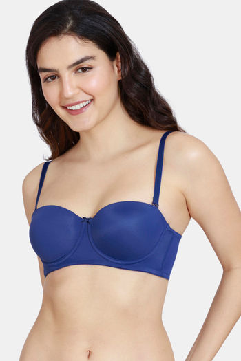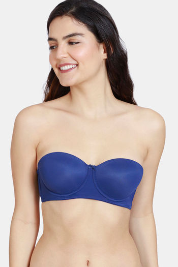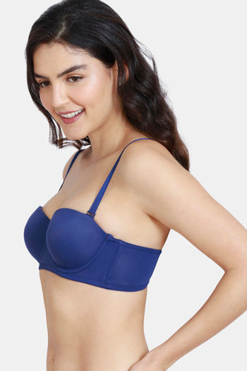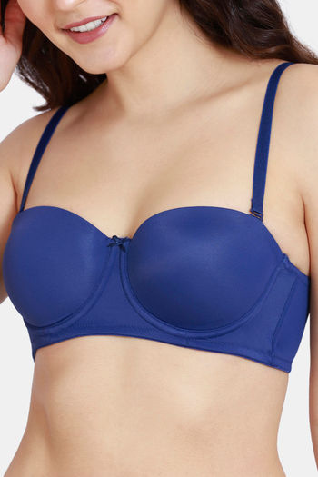 Zivame Beautiful Basics Padded Wired 3/4th Coverage Strapless Bra - Blue Depth