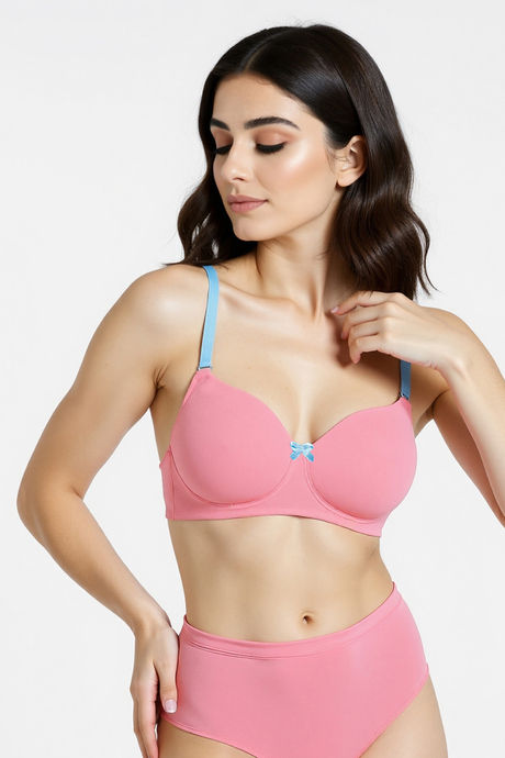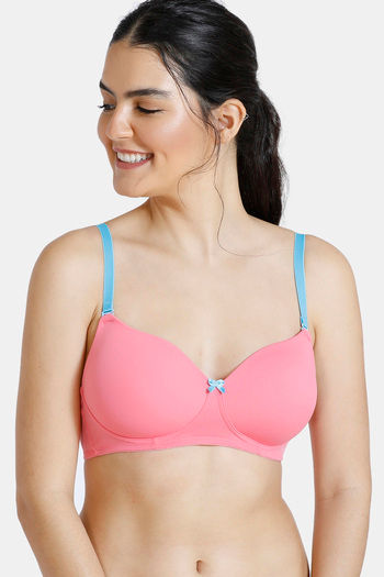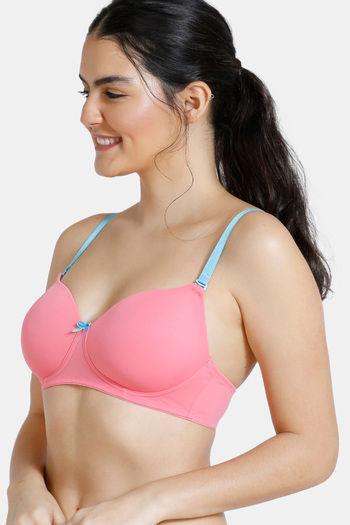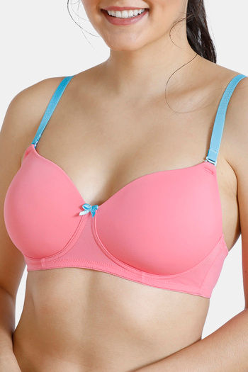 Zivame Padded Non Wired 3/4th Coverage T-Shirt Bra - Pink Lemonade