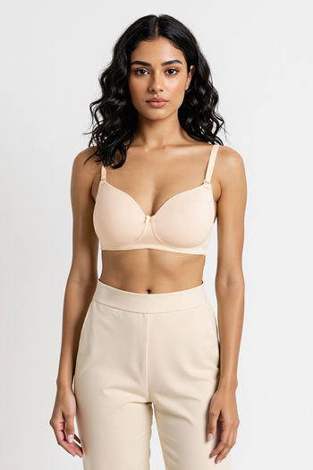 Zivame Padded Non Wired 3/4th Coverage T-Shirt Bra - Toasted Almond