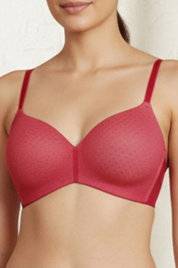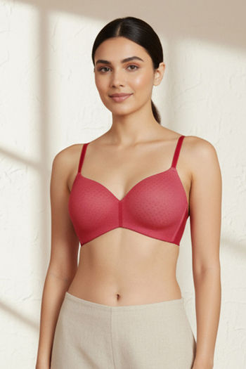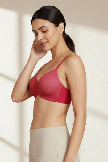Zivame Padded Non Wired 3/4Th Coverage T-Shirt Bra - Burgundy