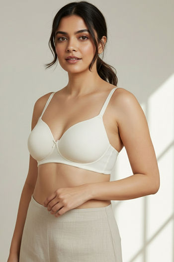 Zivame Padded Non Wired 3/4th Coverage T-Shirt Bra - Whisper White