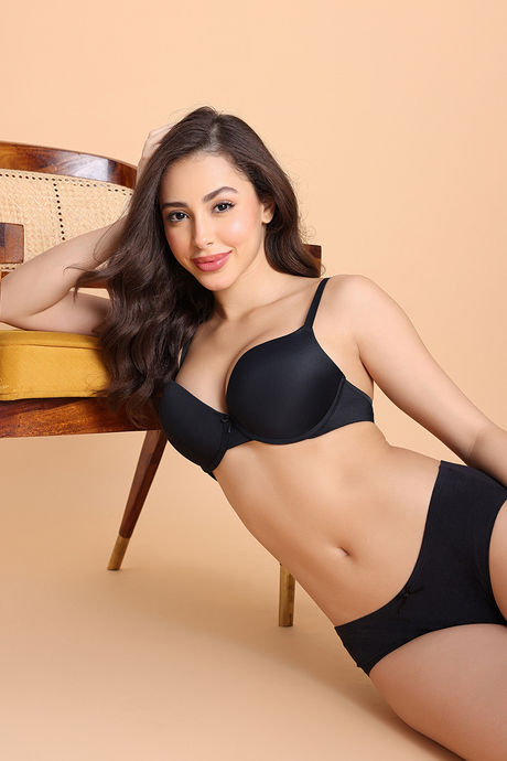 Zivame Plunge Wired Medium Coverage Push Up Bra - Anthracite