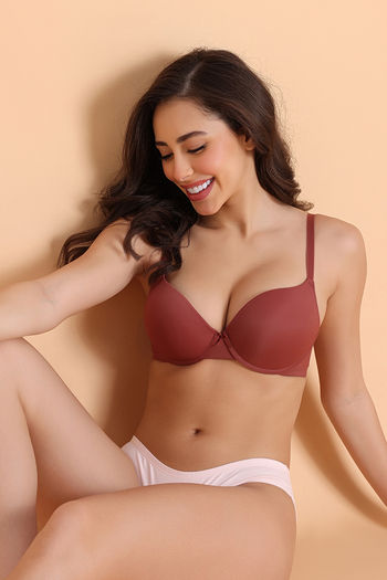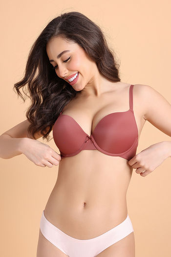 Zivame Plunge Wired Medium Coverage Push Up Bra - Mahagony