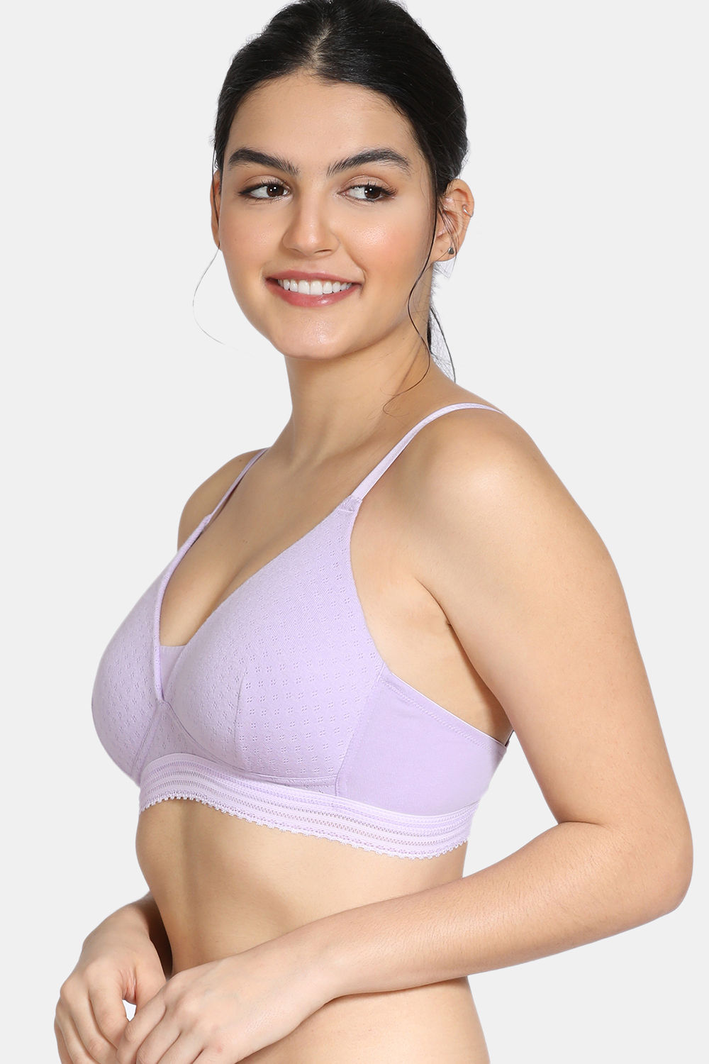 Zivame Pointelle Padded Regular Wired 3/4th Coverage T-Shirt Bra With Medium Rise Hipster Panty - Lavender