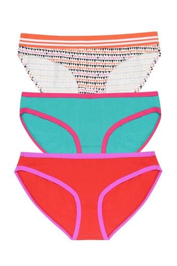 Zivame Premium Cotton Low Rise Bikini Brief- Red Blue Lush Solid(Pack 3)