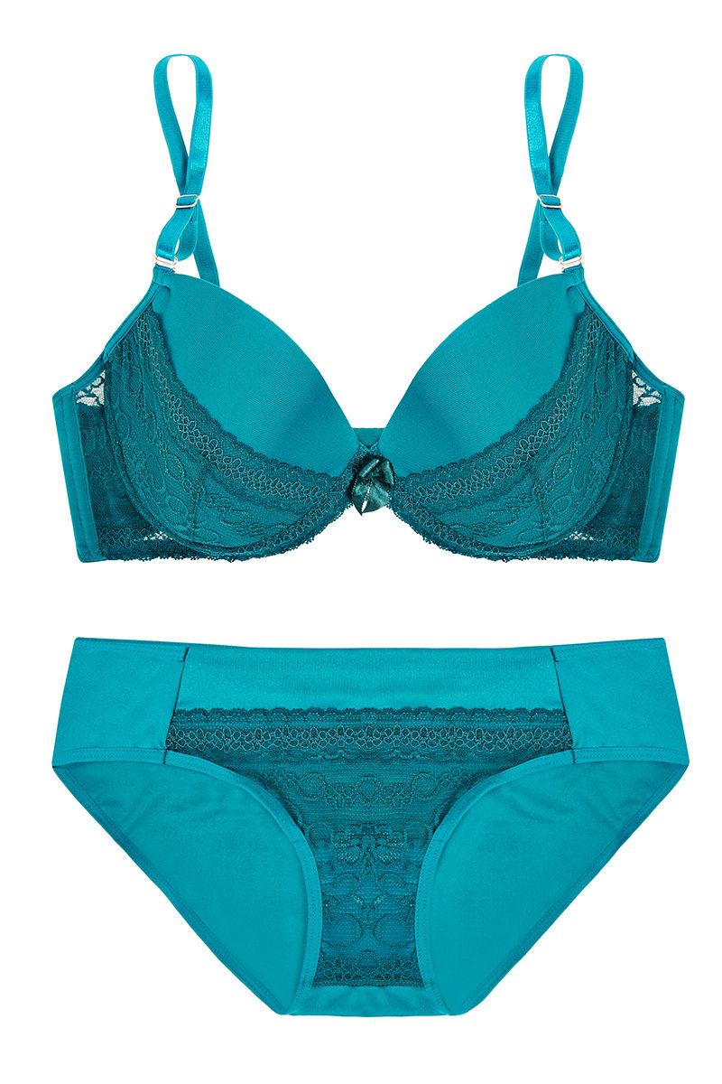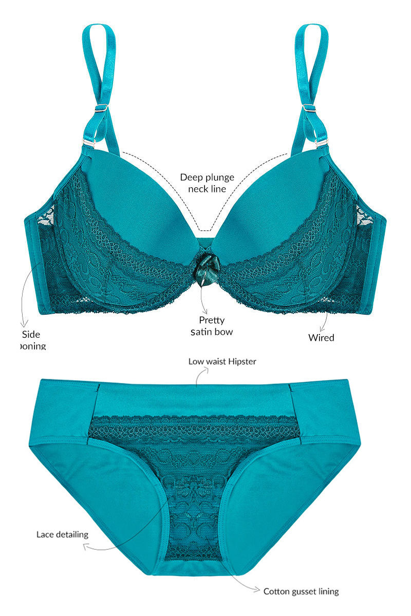 Zivame Private Padded Bra with Low Rise Hipster Panty- Jade