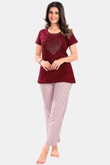 Buy Sweet Moon Knit Cotton Pyjama Set - Nudeviolet Darkmarun