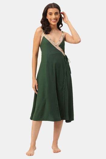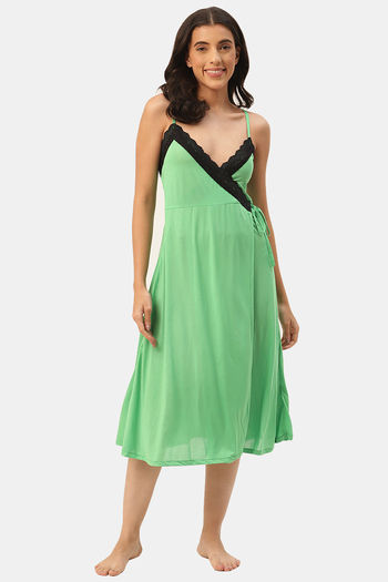 Buy Ms.Lingies Rayon Mid Length Nightdress - Green