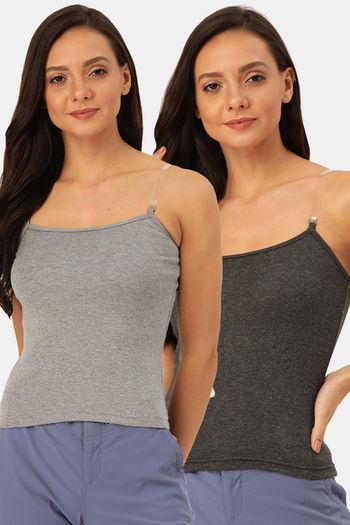 Buy Lady Lyka Cotton Camisole (Pack of 2) - Grey Black