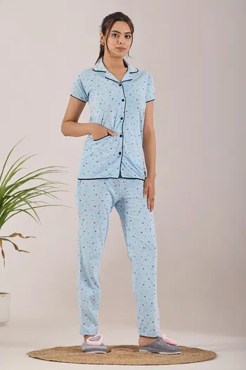 Buy Sweet Moon Knit Cotton Pyjama Set - Baby Sky