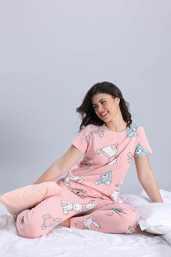 Buy Zivame Knit Cotton Pyjama Set - Blossom