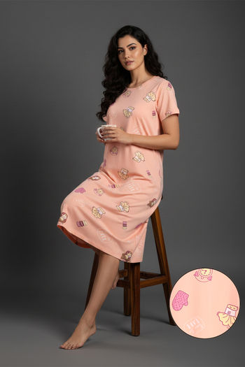 Buy Zivame Farm Lore Knit Cotton Knee Length Nightdress - Peach Pearl