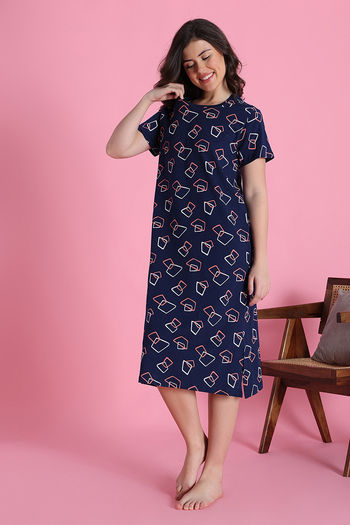 Buy Zivame Knit Cotton Mid Length Nightdress - Navy Blazer