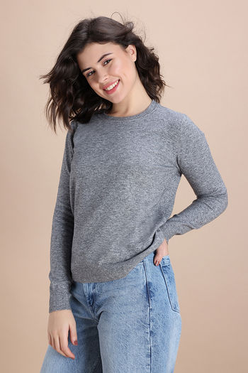 Zivame Retro Peek Full Sleeve Sweater - Blue