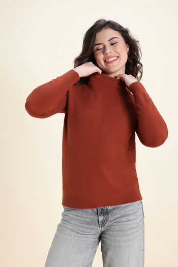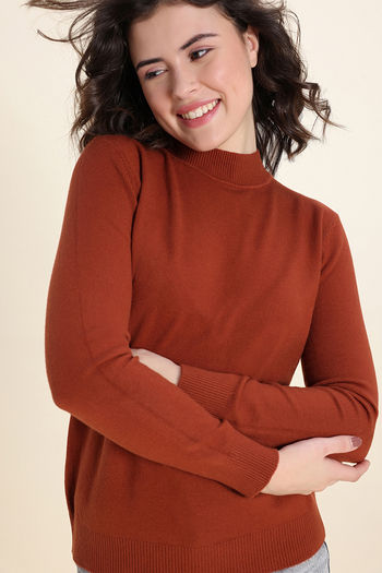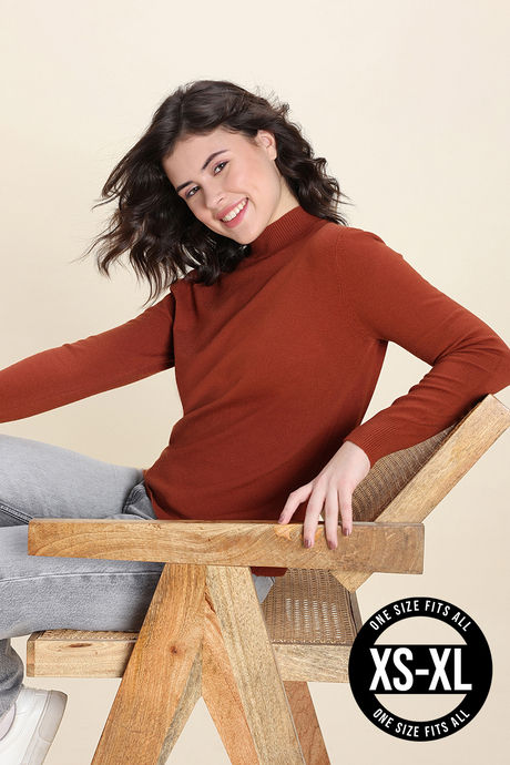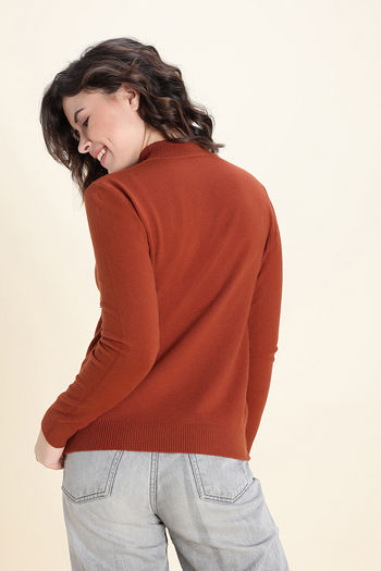 Zivame Retro Peek Full Sleeve Sweater - Brown
