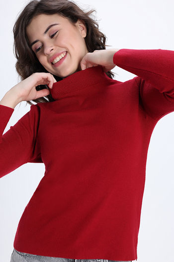 Zivame Retro Peek Full Sleeve Sweater - Red