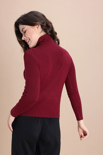 Zivame Retro Peek Full Sleeve Sweater - Red