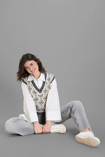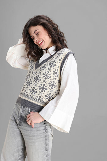 Zivame Retro Peek Sleeveless Sweater - Navy Floral