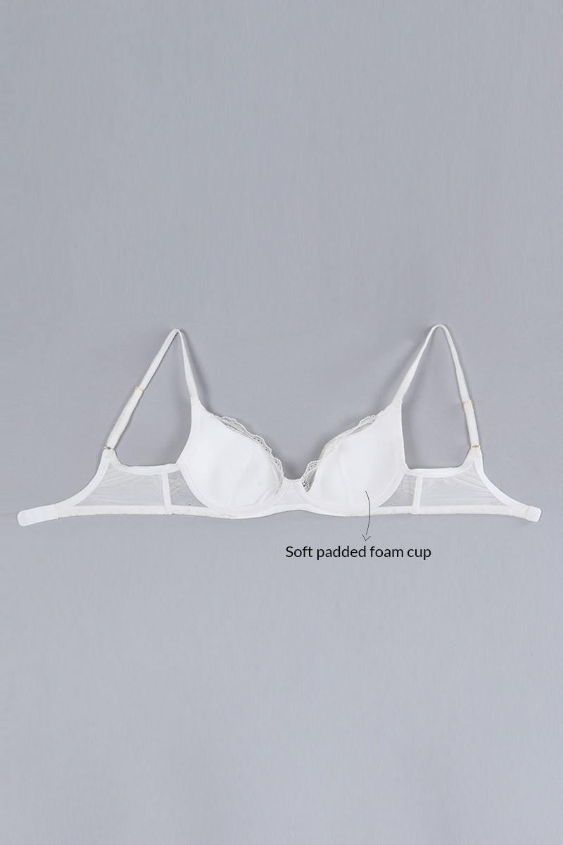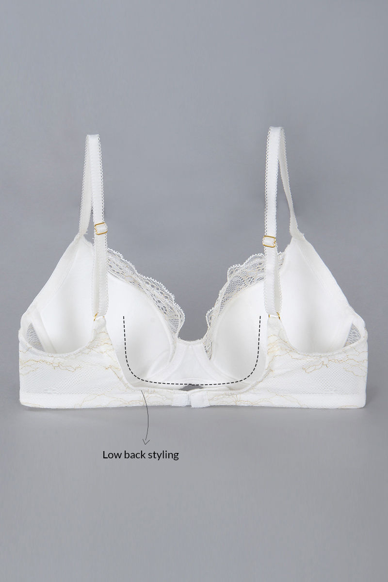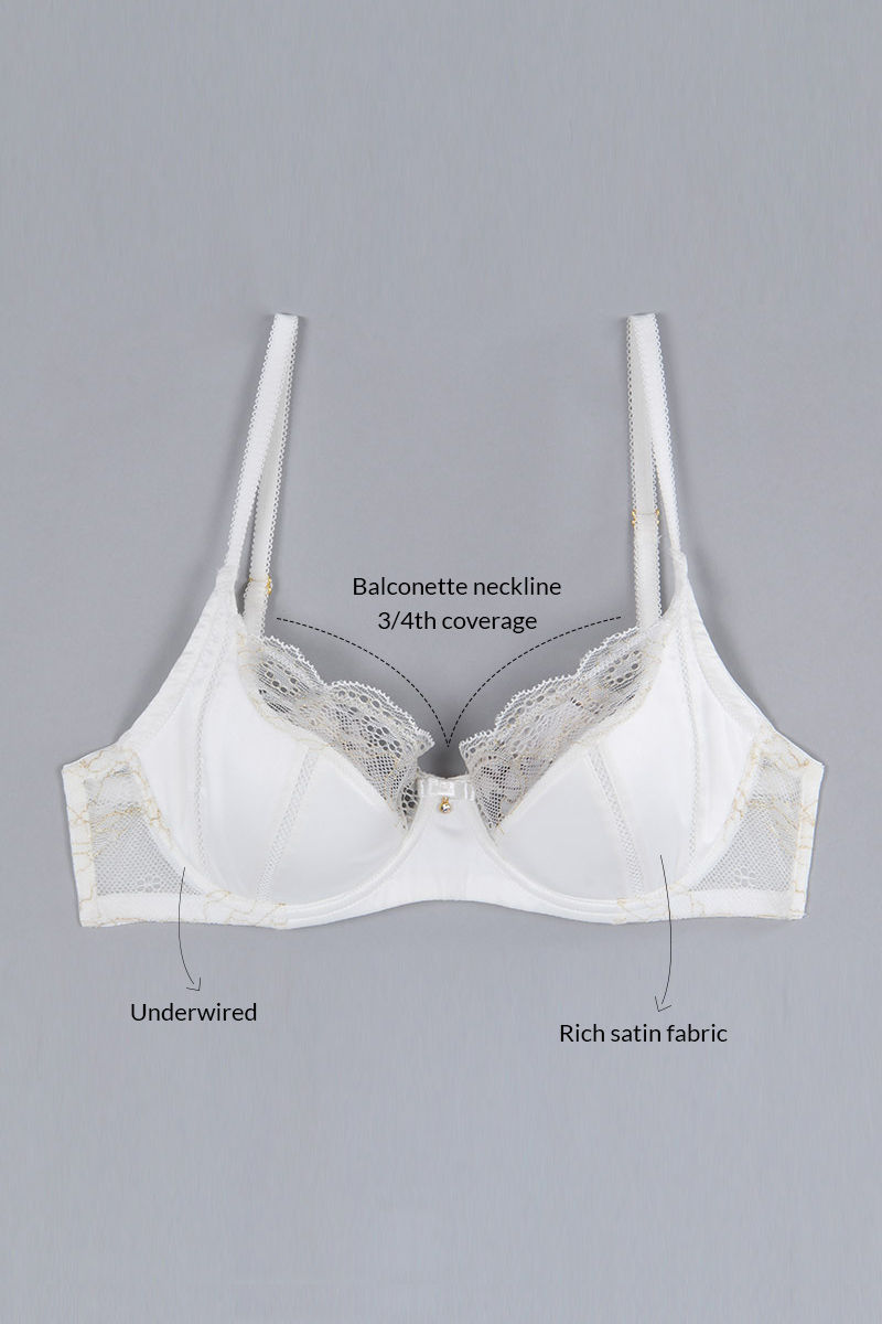 Zivame Satin Balconette Bra with Low Rise Thong Panty- Pearl White