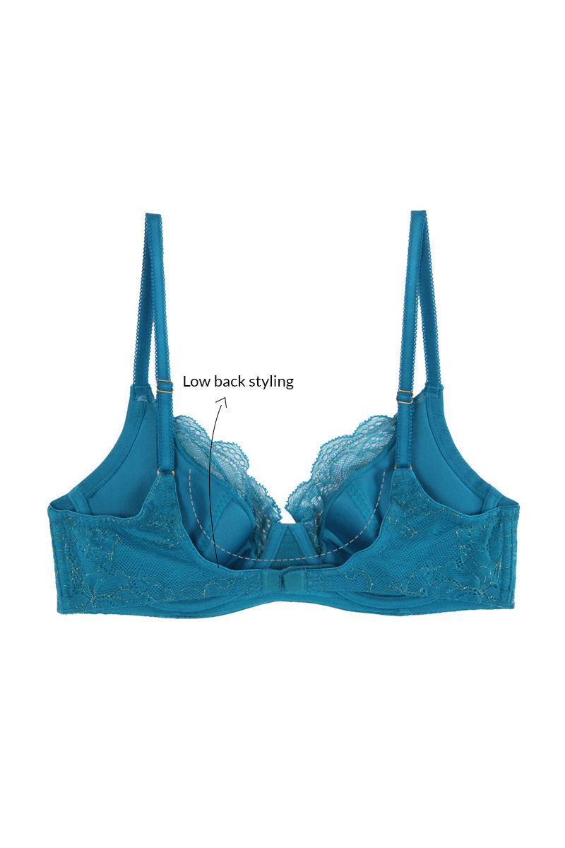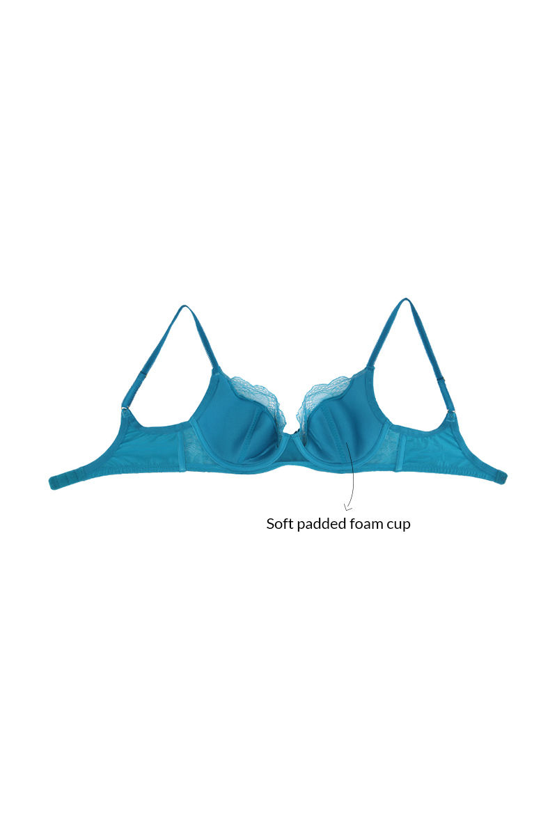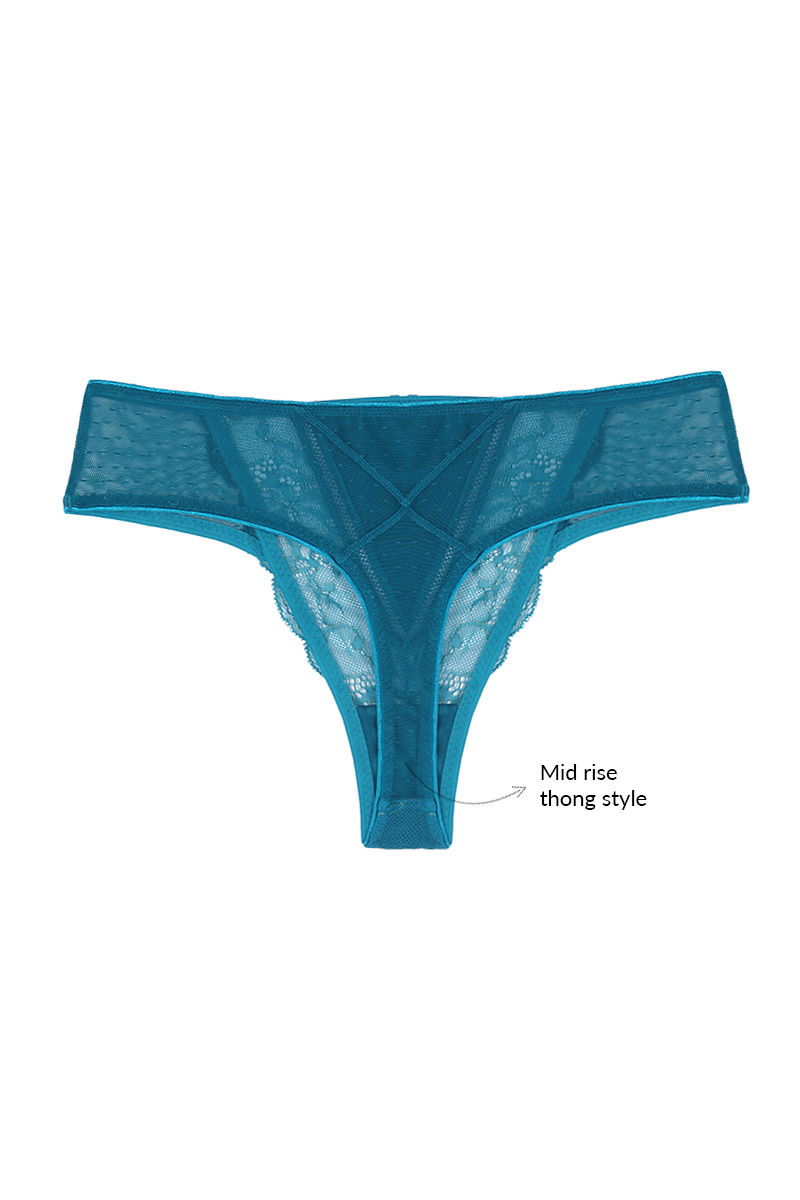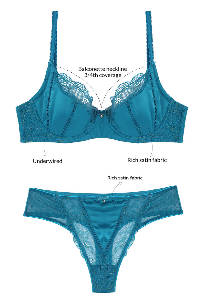 Zivame Satin Balconette Bra with Mid Rise Thong Panty- Mermaid Blue