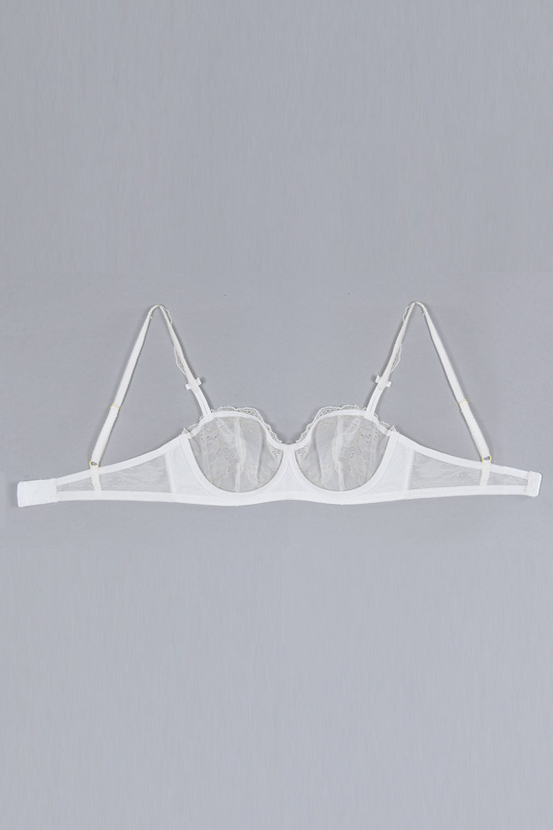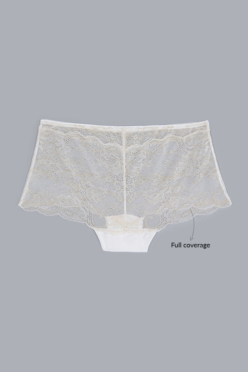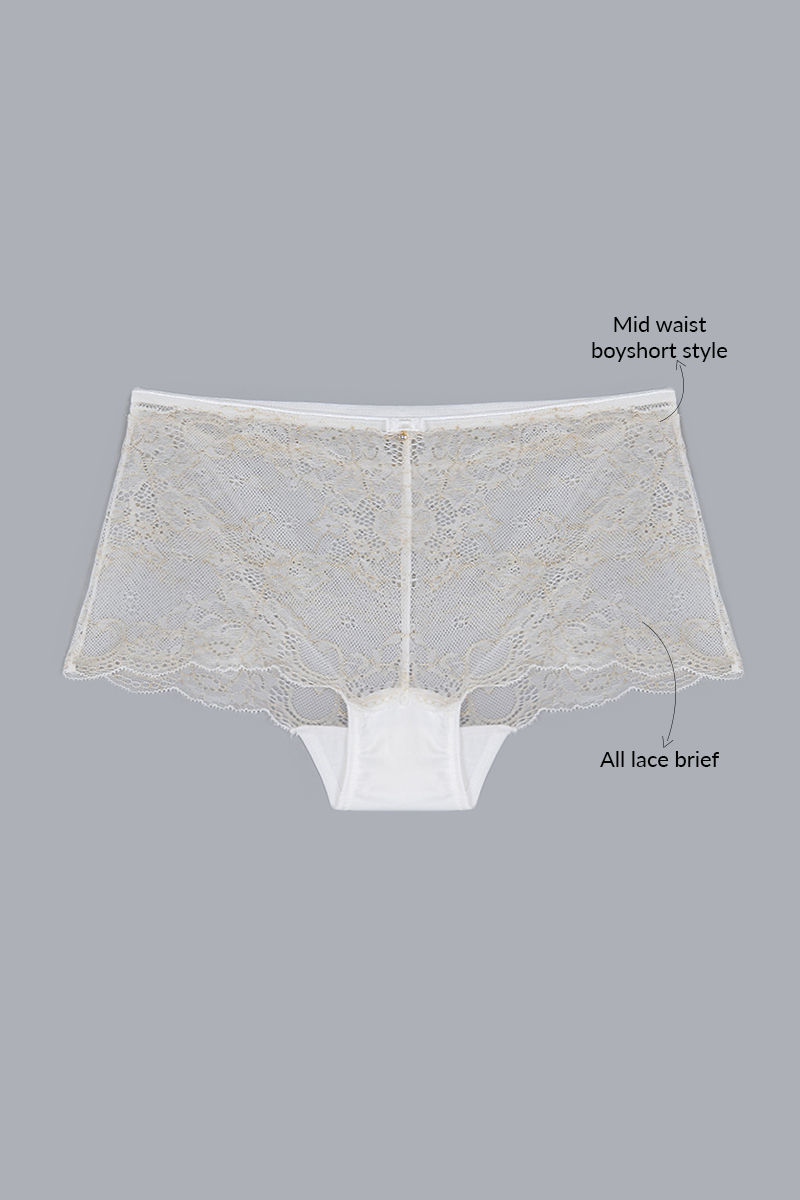 Zivame Satin Balconette Neckline Bra with Mid Rise Boyshort Panty- Pearl White