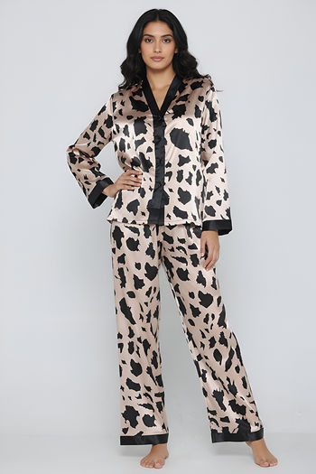 Zivame Satin Loungewear Set - Peach Tree