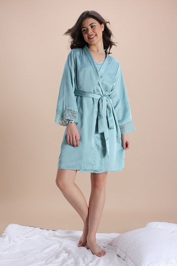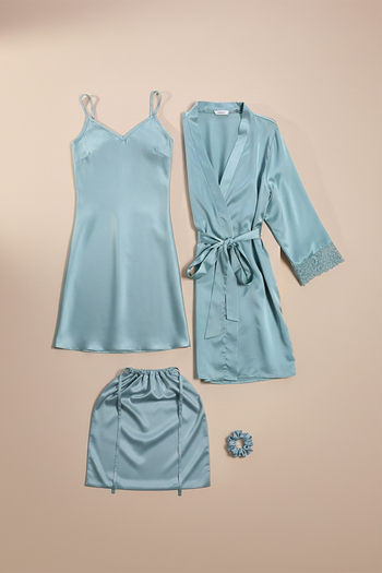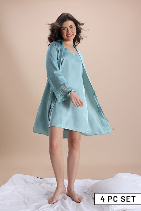 Zivame Luxe Satin 4 Pc Sleep Set - Mist Green