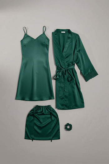 Zivame Luxe Satin 4 Pc Sleep Set - June Bag