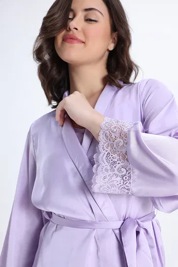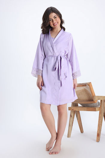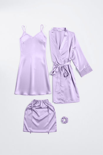 Zivame Luxe Satin 4 Pc Sleep Set - Purple Heat