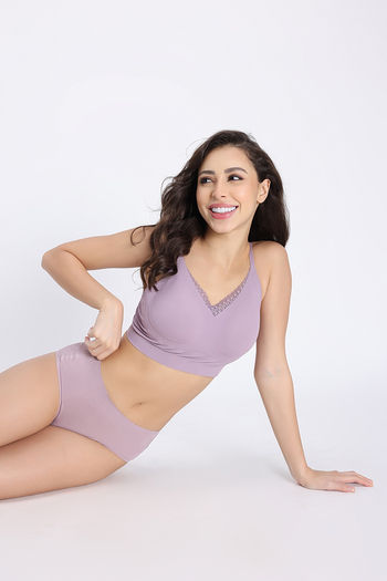 Zivame Seamless Collective Padded Non Wired 3/4Th Coverage Bralette - Sea Fog