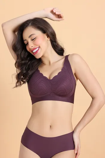 Zivame Seamless Collective Padded Non Wired 3/4th Coverage Lace Bra - Fig