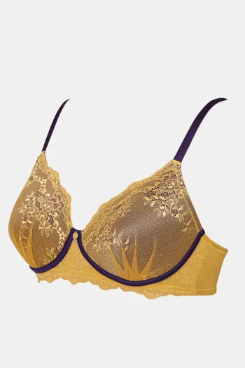 Zivame Sensual Stir Padded Non Wired 3/4th Coverage Lace Bra - Honey Mustard