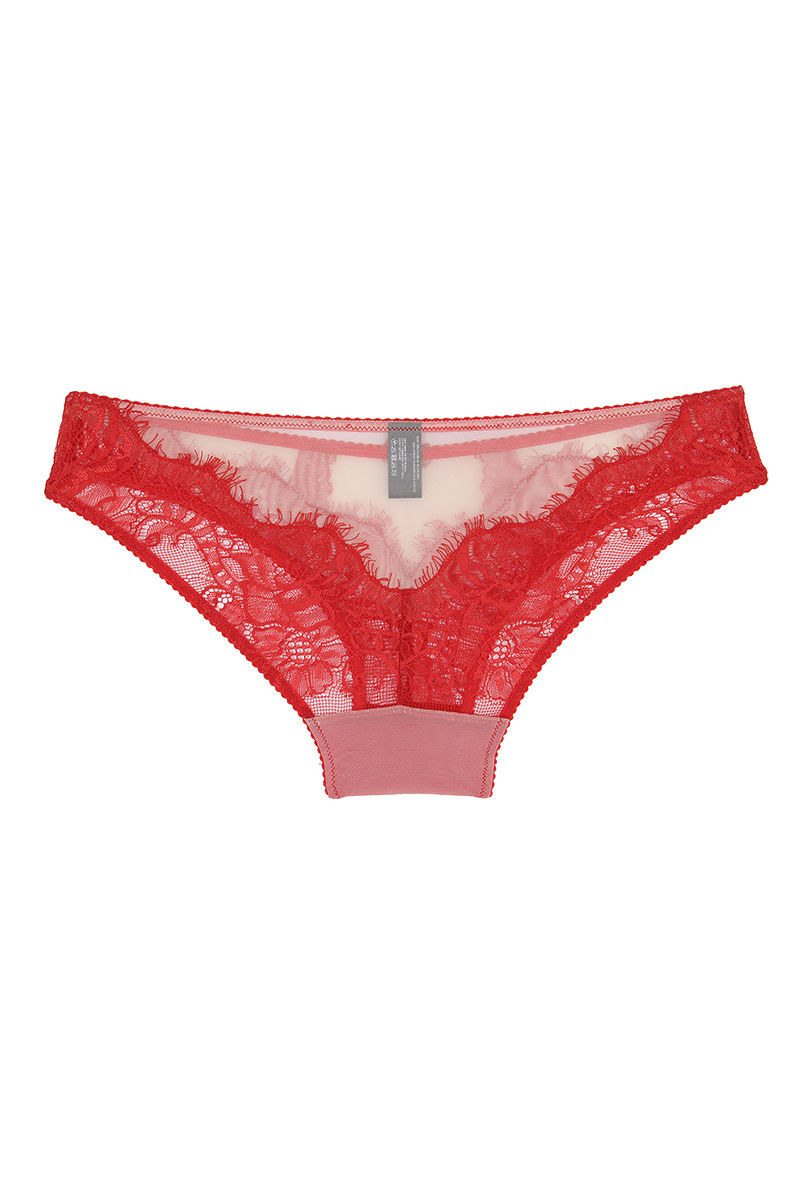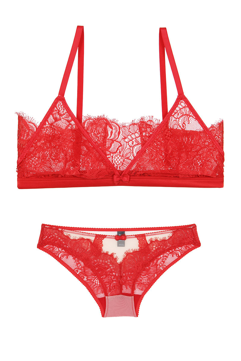 Zivame Sensuous Longline Bra with Mesh Bikini- Red
