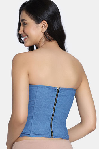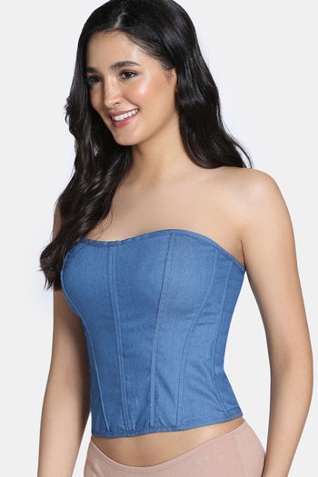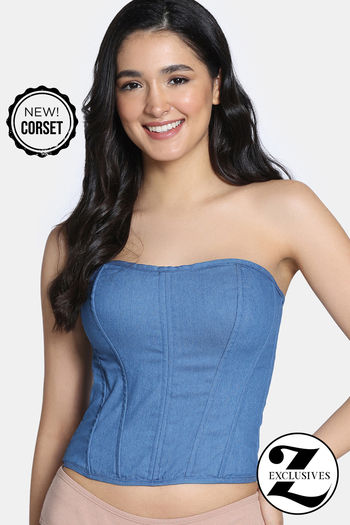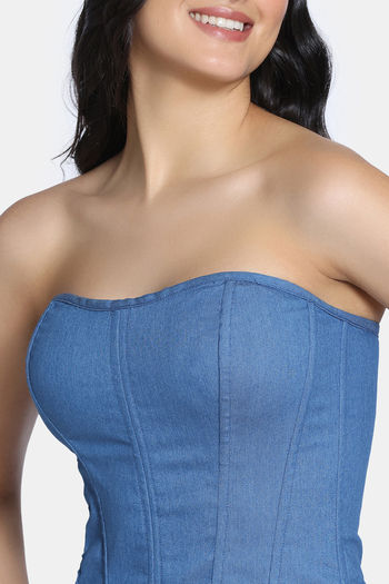 Zivame Non-Padded Short Slip Corset - Dark Wash