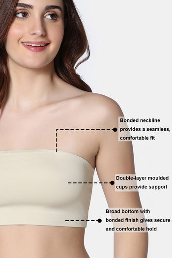Zivame Seamless Collective Single Layered Non Wired Full Coverage Bandeau Bra - White Smoke