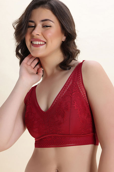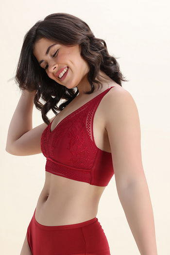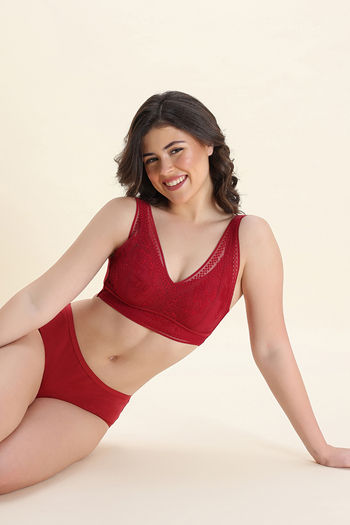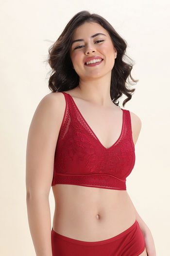 Zivame Padded Non Wired Full Coverage Bonded Bralette - Red