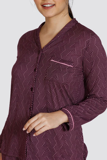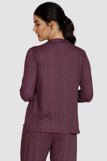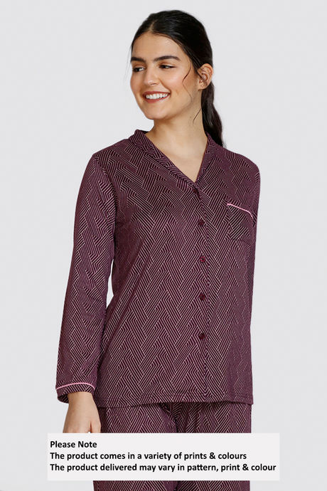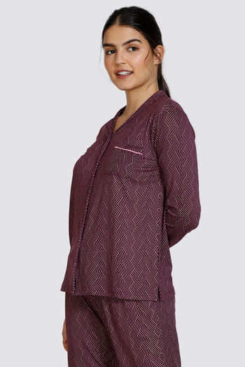 Zivame Sleep Assorted Collar Neck Long Sleeve Top - Lavender