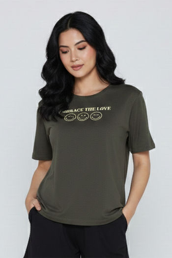 Zivame Smiley World Knit Cotton Loungewear Top - Green