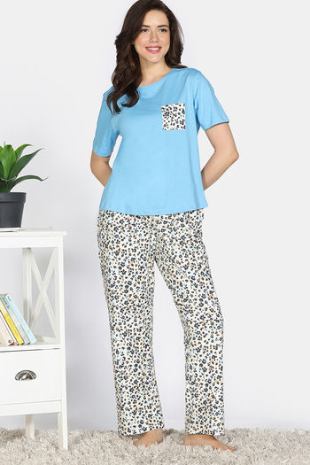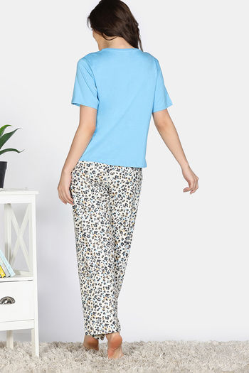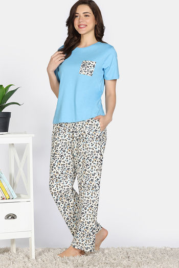 Zivame Snuggle Safari Knit Poly Pyjama Set - Antique White