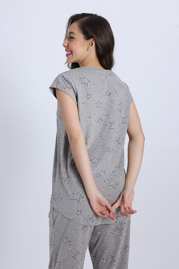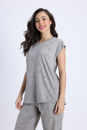 Zivame Starry Whisper Knit Cotton Pyjama Set - Paloma