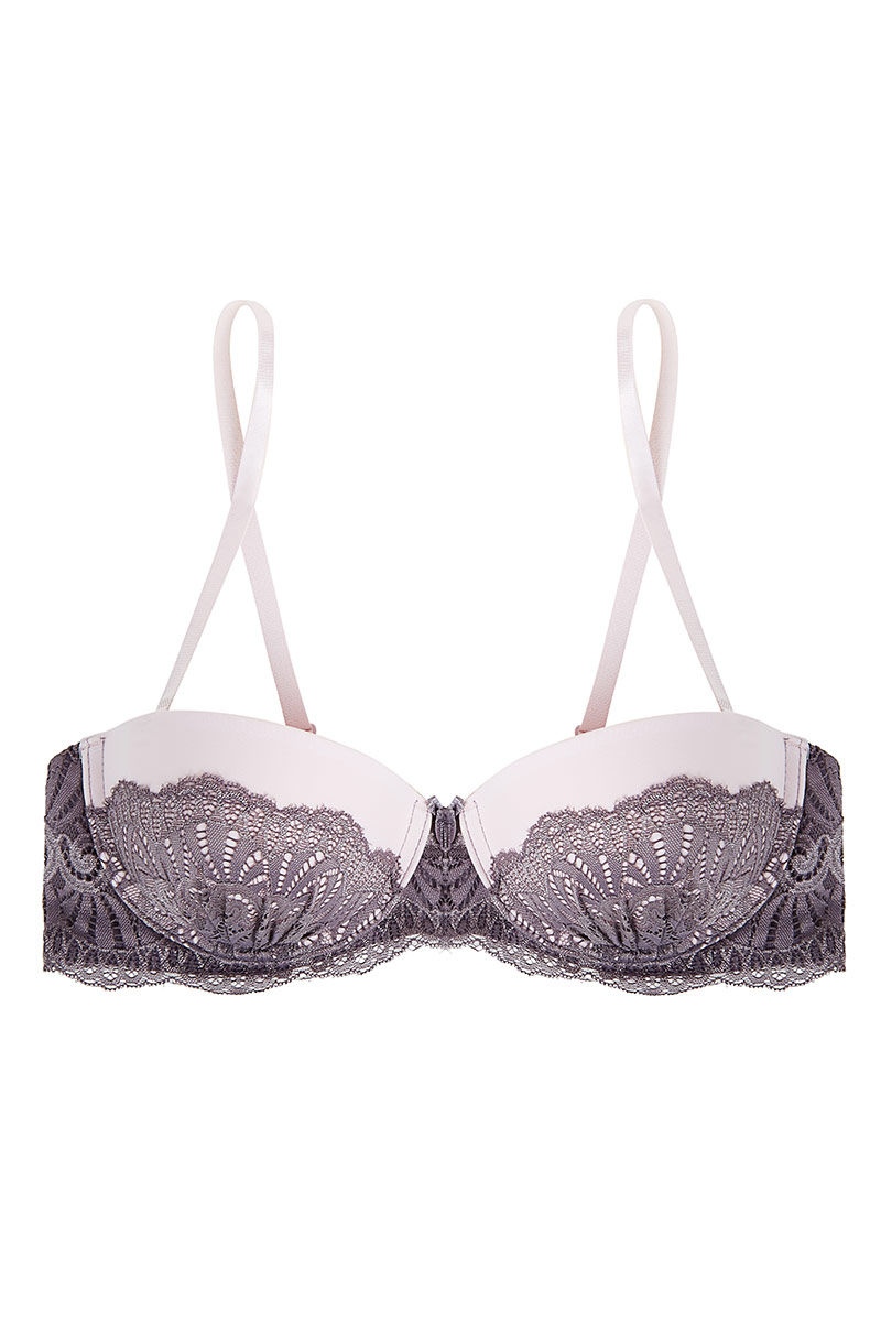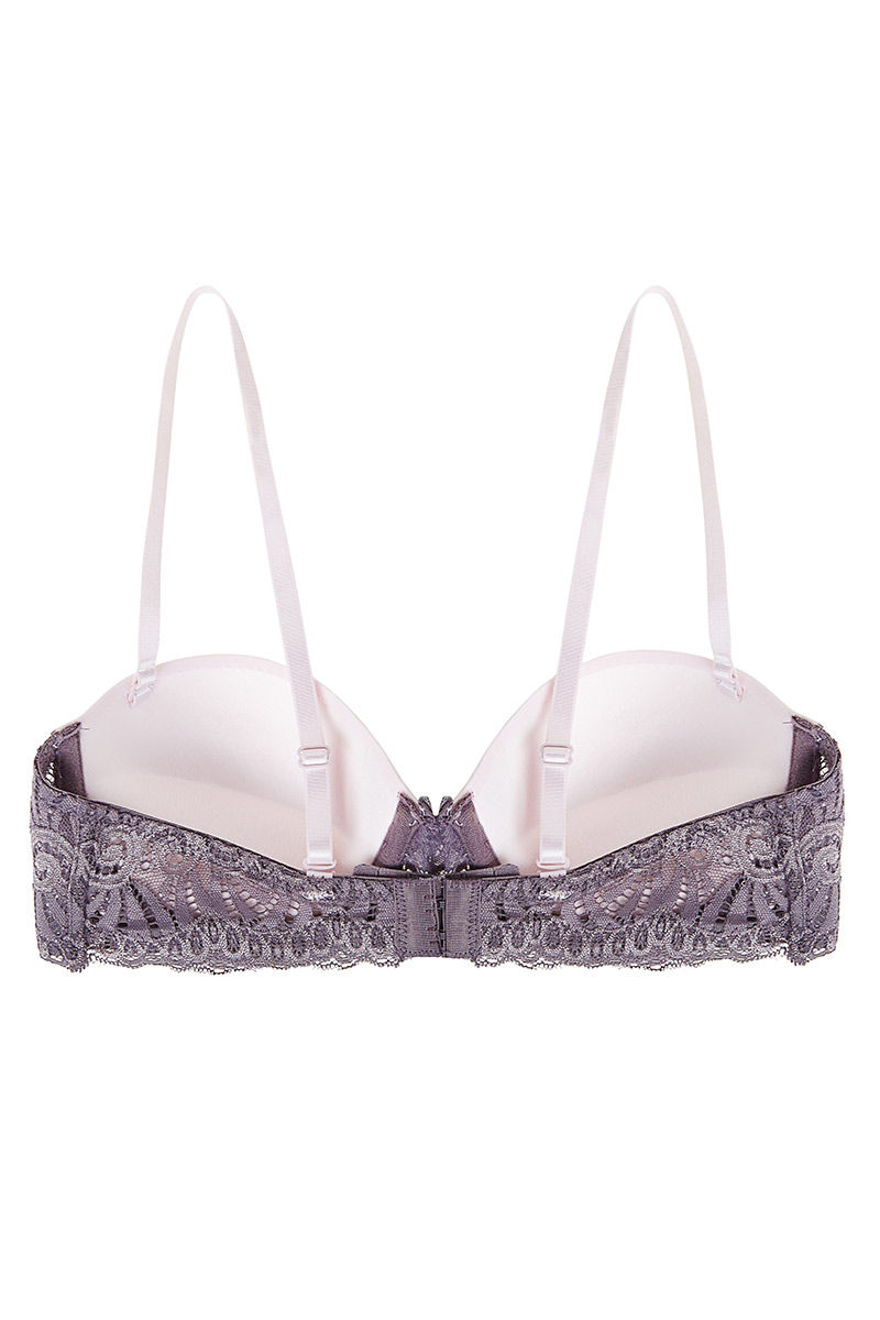 Zivame Summer Lace Push Up Strapless Bra And Low Rise Hipster Panty Set-Pink With Blue